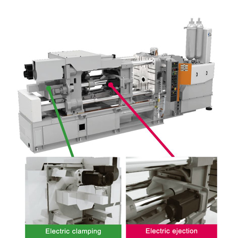 Since the driving sources for die opening/closing, ejection, and the core are independent, parallel operations are possible, further reducing cycle time.