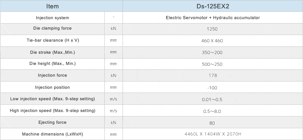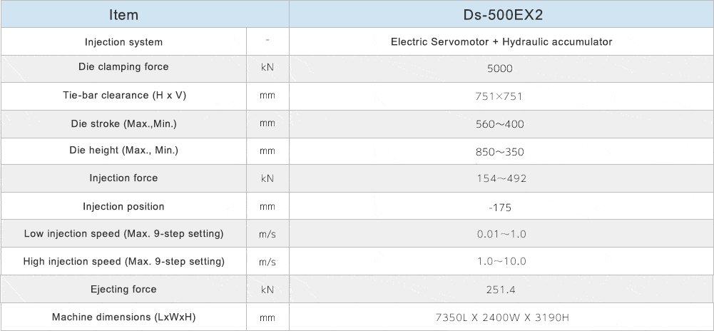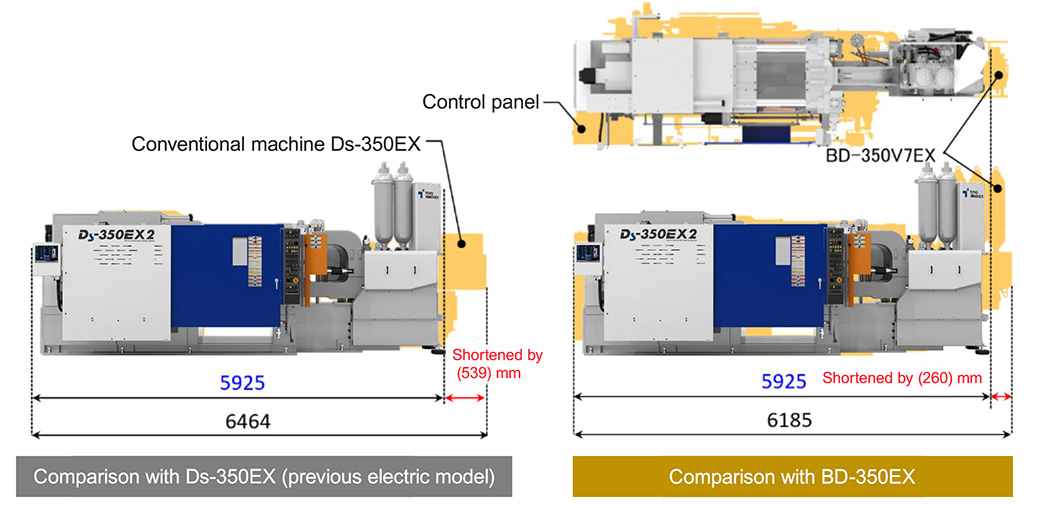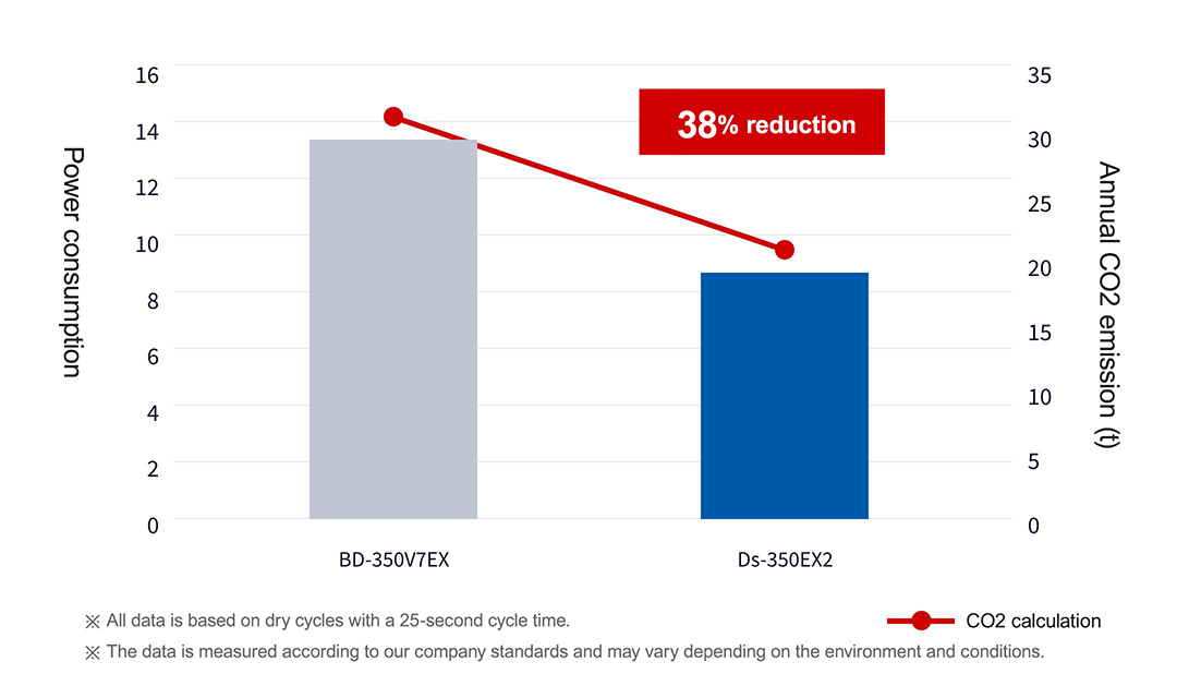Since the Ds-EX2 uses hydraulic drive only for injection, it reduces hydraulic oil consumption compared to the hydraulic BD-V7EX. This reduction in hydraulic oil consumption contributes to environmental protection.