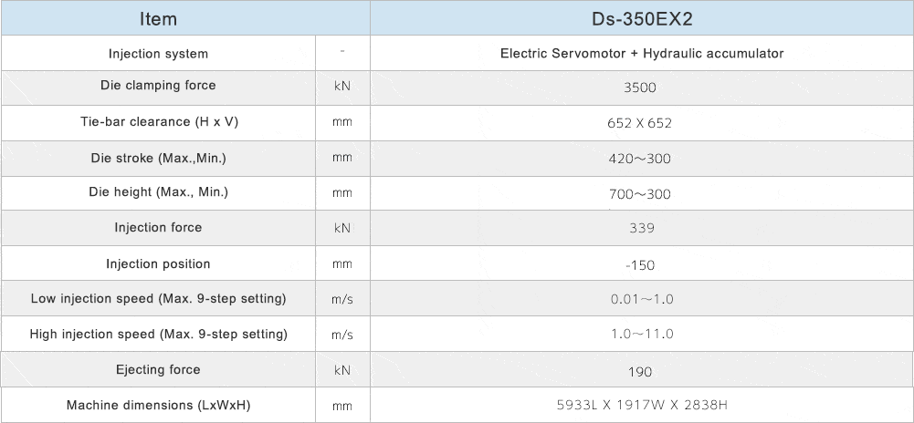 The injection unit is equipped with our proprietary "THRV System," which enables high-speed injection acceleration.