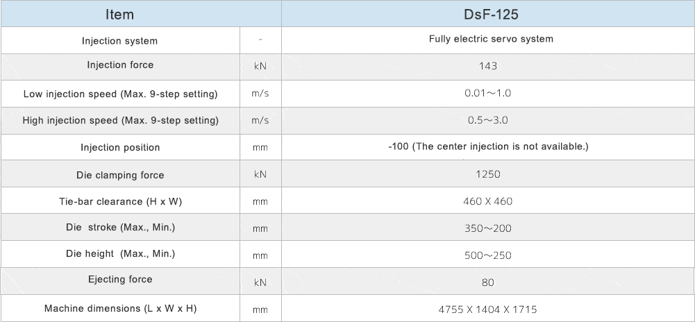 DsF-125 Main Specifications