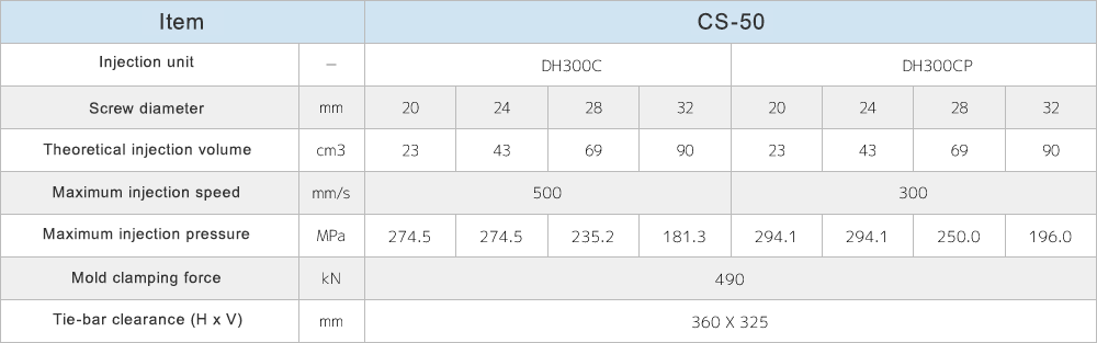 While inheriting proven technologies such as the ""V-Clamp"" clamping mechanism, developed through industry-academia collaboration, we have improved fundamental specifications such as tie-bar spacing and ejector stroke.