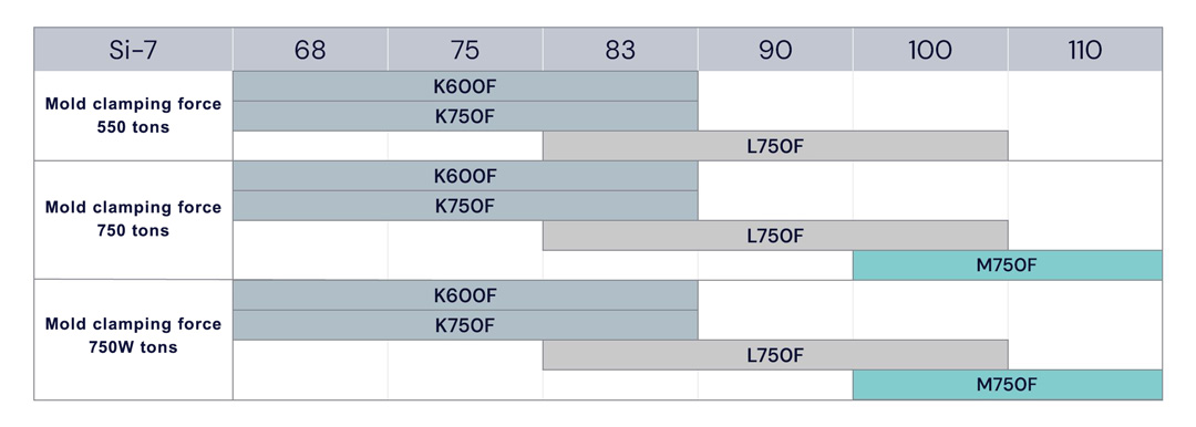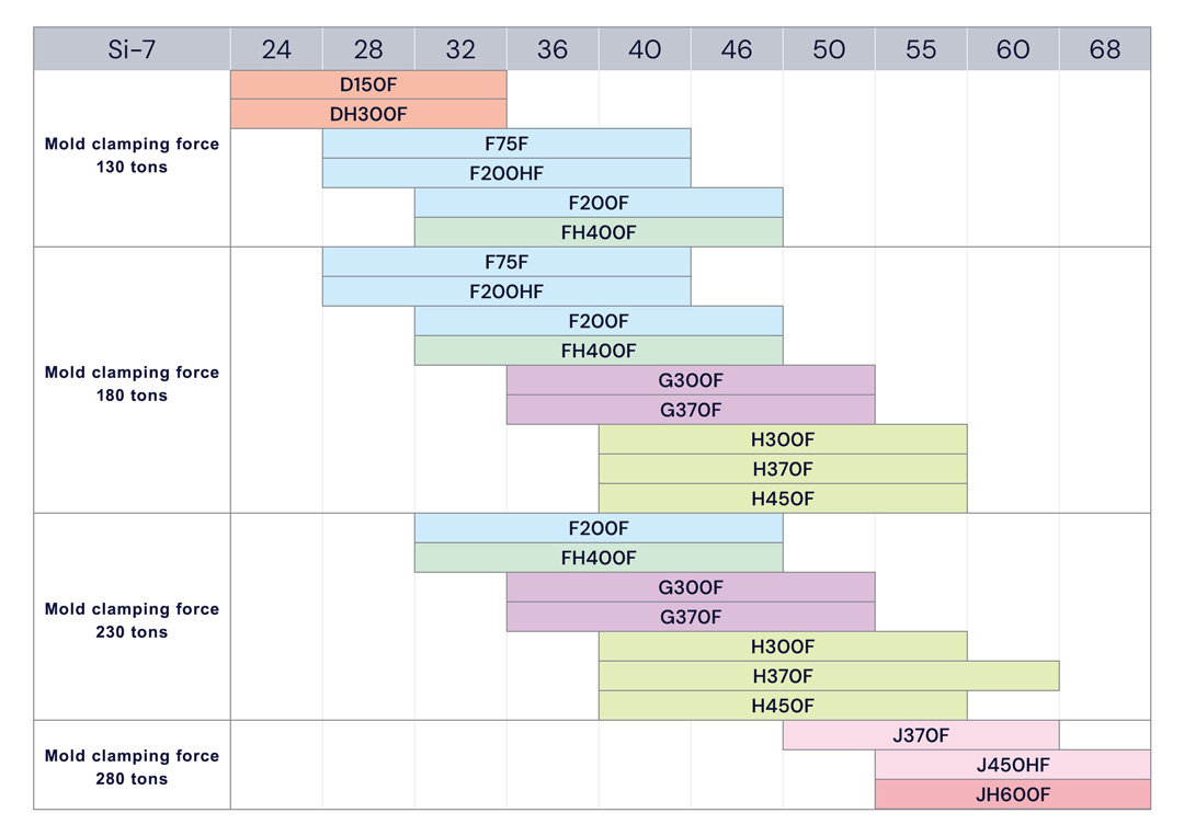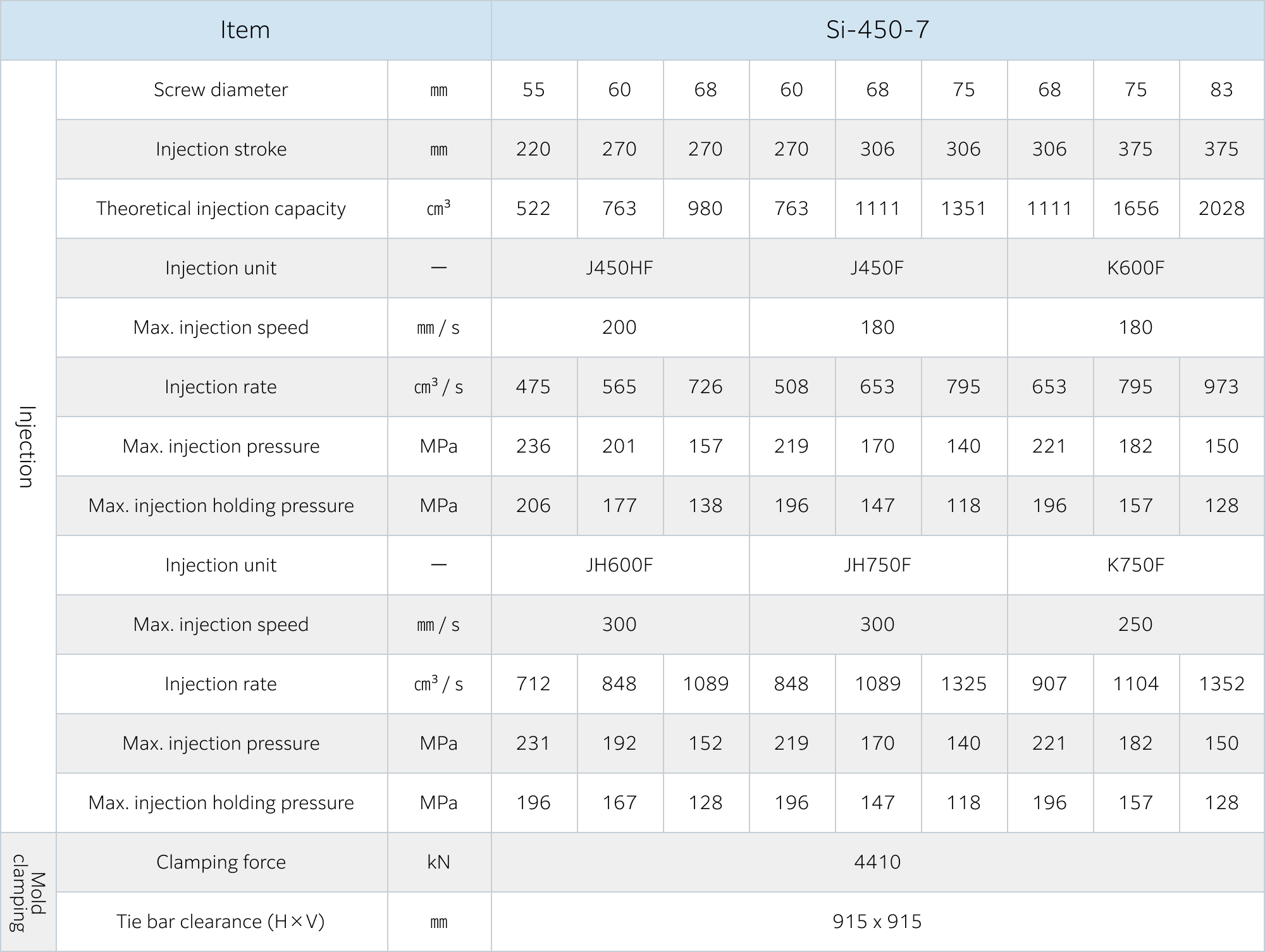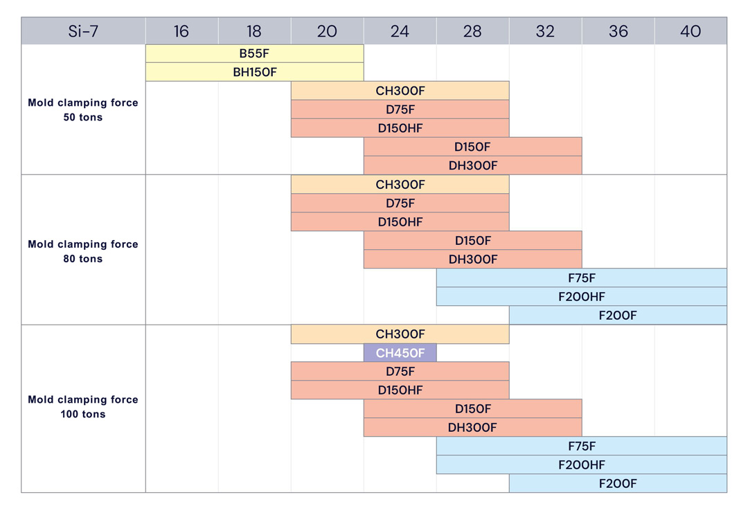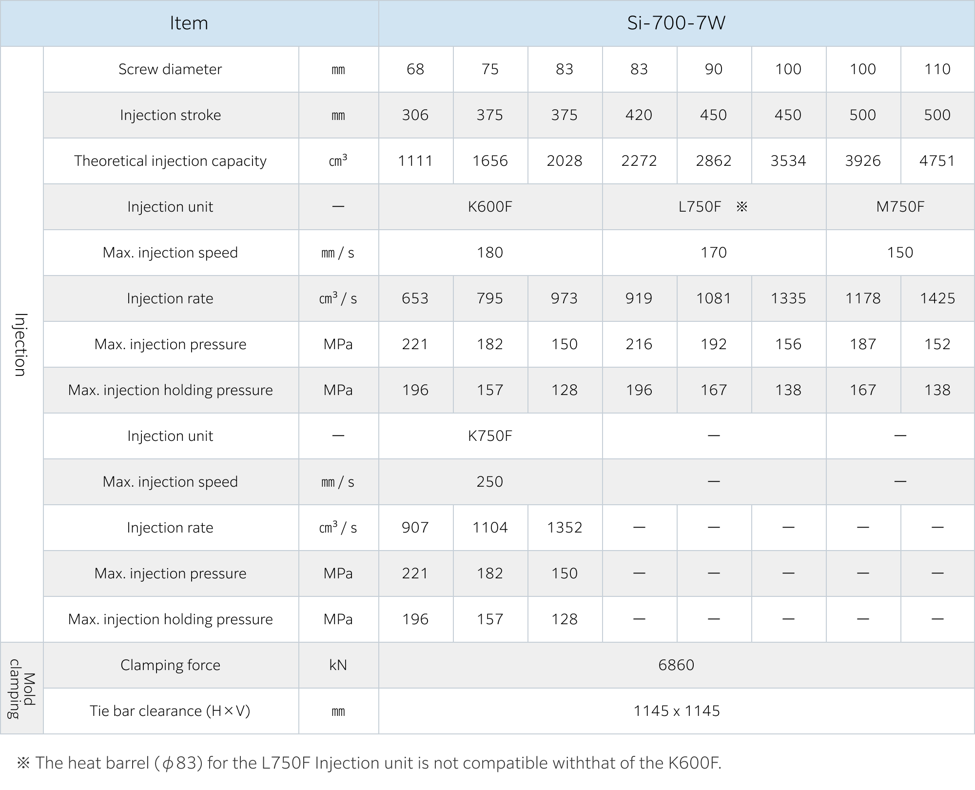 By expanding the daylight and increasing the tie-bar spacing, the flexibility for mounting molds has been enhanced. The increased space also provides more room for considering mold changeover devices, contributing to improved production efficiency.