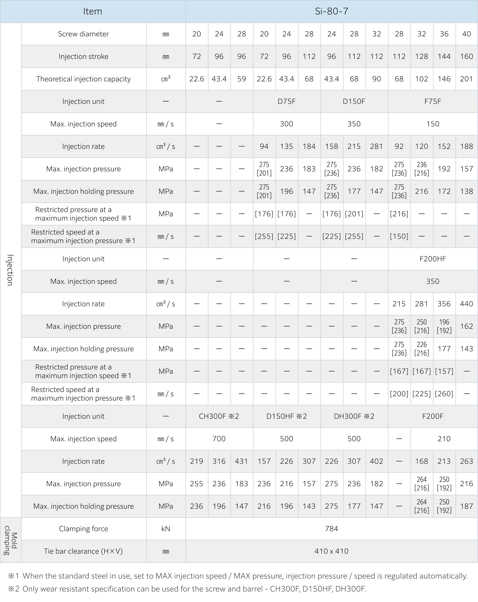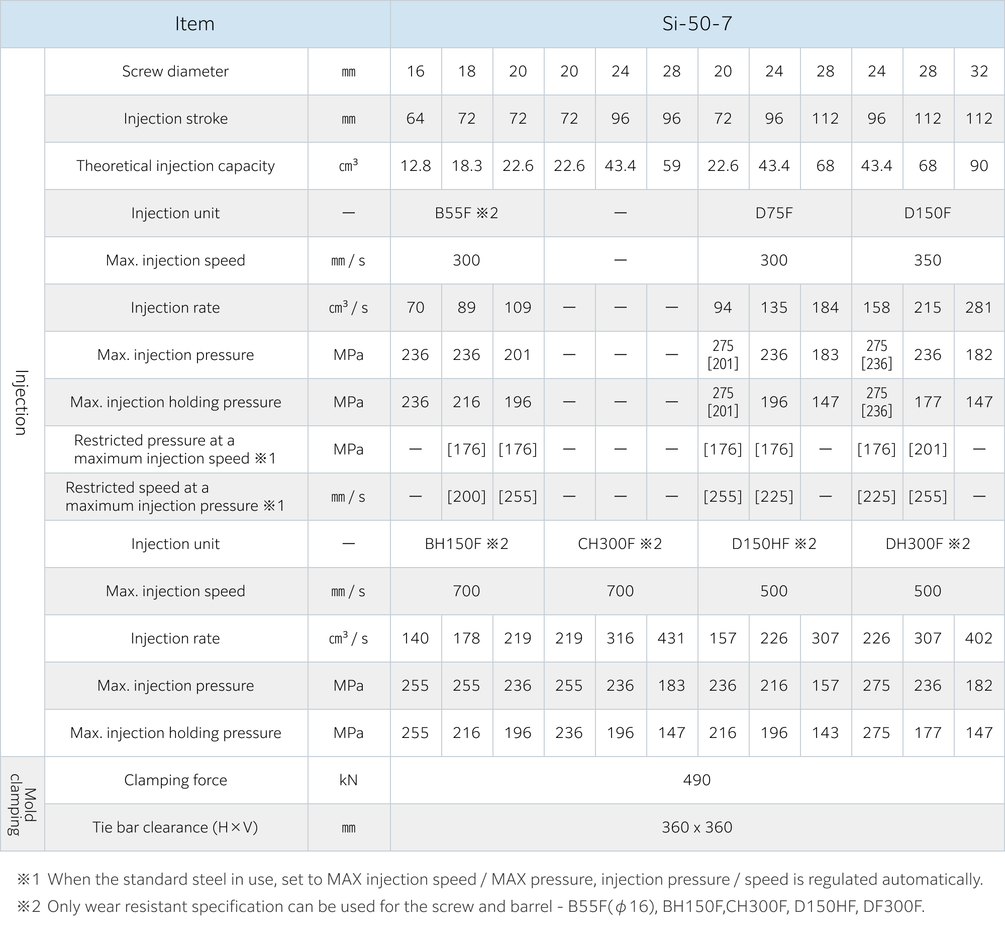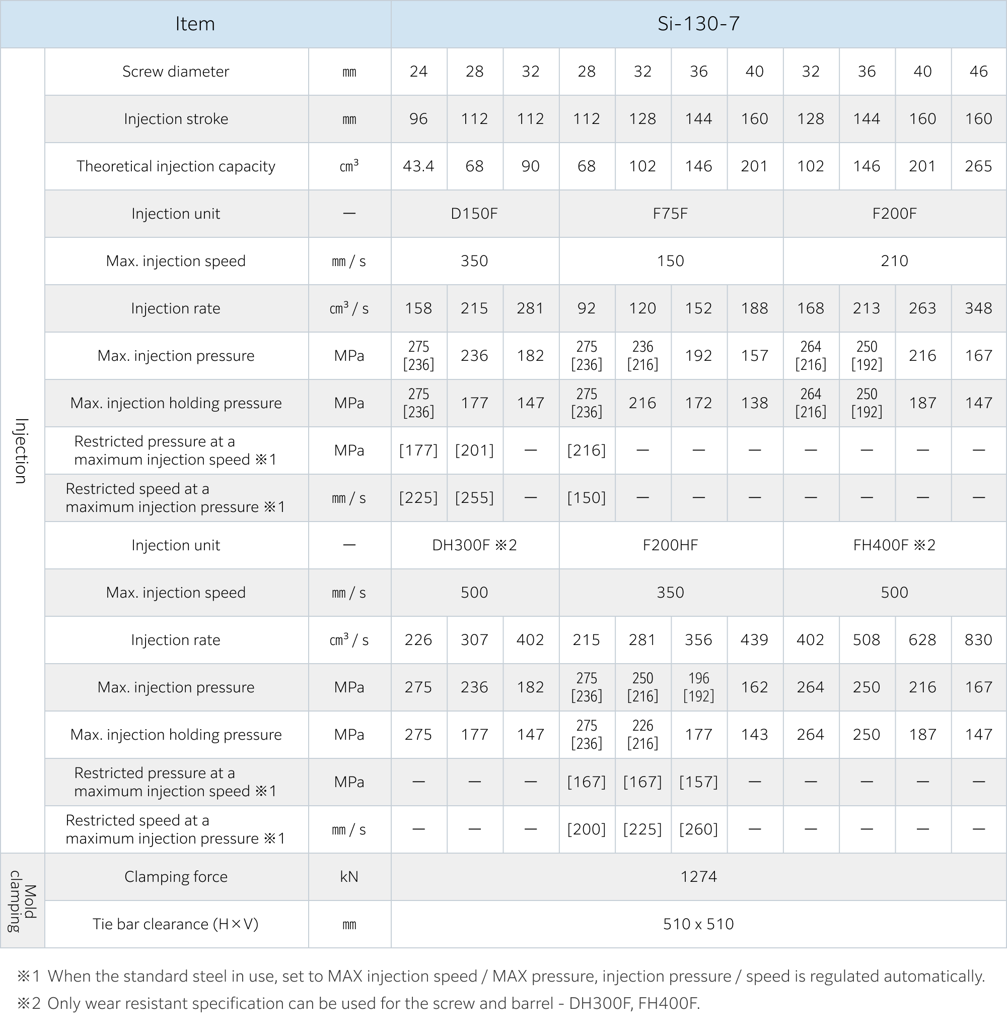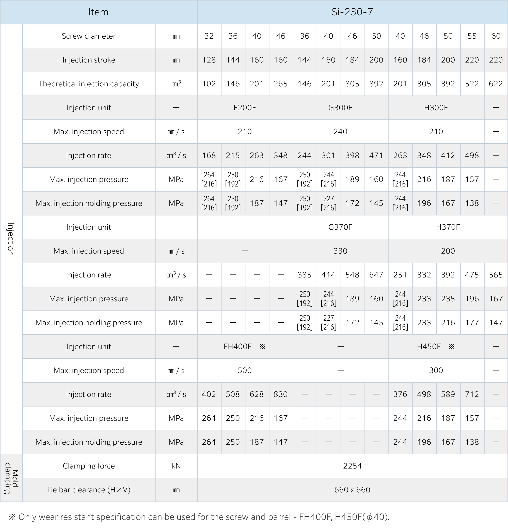 By expanding the daylight and increasing the tie-bar spacing, the flexibility for mounting molds has been enhanced. The increased space also provides more room for considering mold changeover devices, contributing to improved production efficiency.