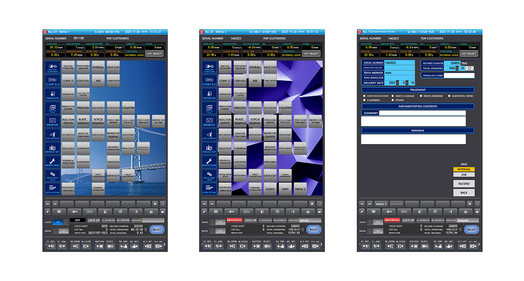 The new "SYSTEM 800 SE" control system is designed to enhance information integration and convenience. Its operation unit features an 18.5-inch wide-color LCD HMI (Human-Machine Interface) with a capacitive multi-touch panel, combining a premium feel with smartphone-like operability. Its key features are reflected in four aspects: "Visibility," "Functionality," "Convenience," and "Maintainability."