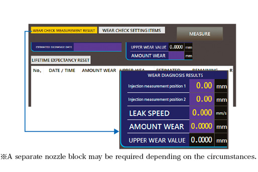 The viscosity of the resin is measured and quantified using meltcon®. Based on the quantified data, wear amount is determined using a proprietary analysis process. This not only helps in identifying the optimal maintenance timing but also aids in production management.