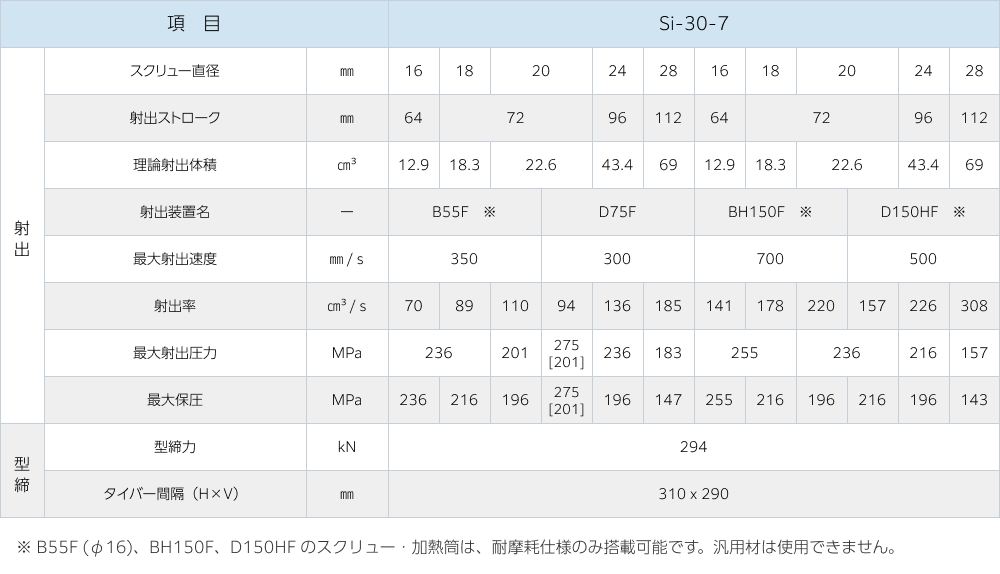 • 最大射出圧力は、成形条件、サイクル等によって制限される場合があります。