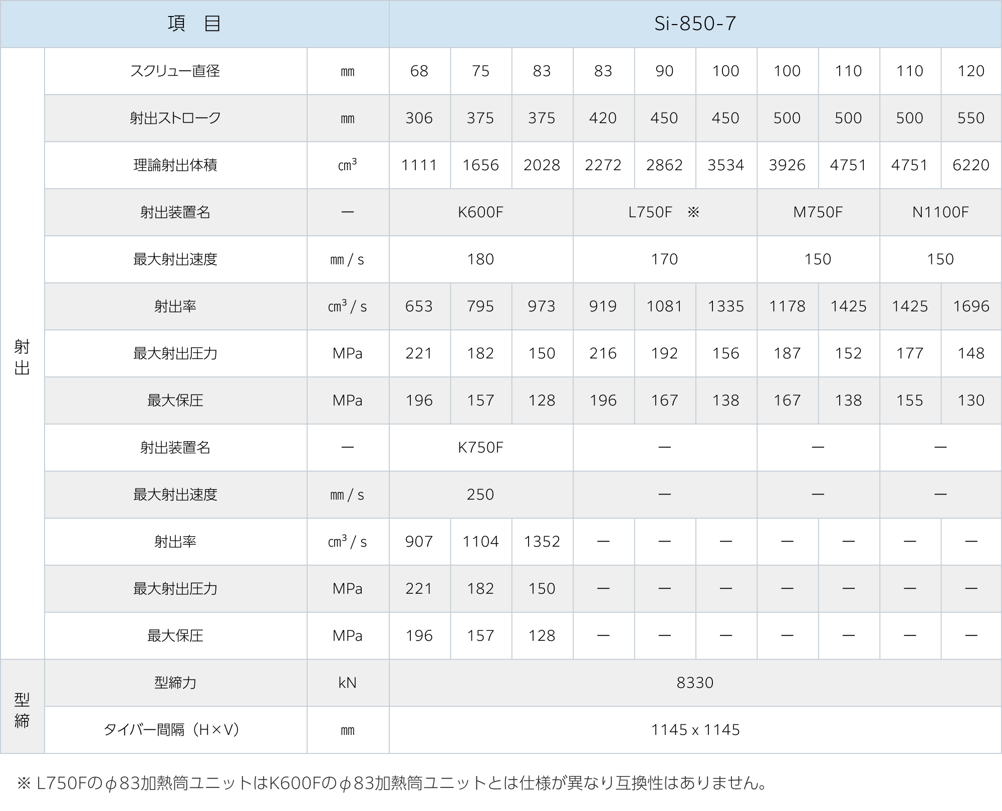 - 最大射出圧力は、成形条件、サイクル等によって制限される場合があります。